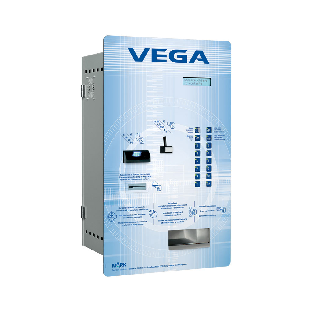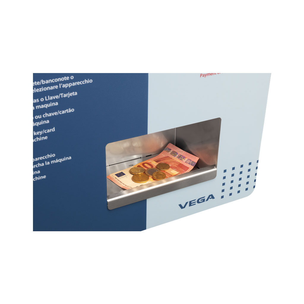 Ela gerencia até 7 dispositivos e está equipada com leitor de notas, alimentador de moedas e sistema de pagamento sem dinheiro com cartão/chave MF3.